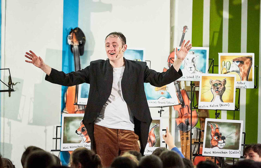 In seiner Verzweiflung, ein Orchester für sein Debütdirigat zu finden, gerät der junge Dirigent Karawan an eine dubiose Agentur, die ihm schnelle Hilfe verspricht. Wenig später ist sein Wohnzimmer von den seltsamsten Musiker:innen bevölkert: eine Horde musizierender Tiere, die sich weniger für Beethoven als für ihre nächste Mahlzeit interessiert.
